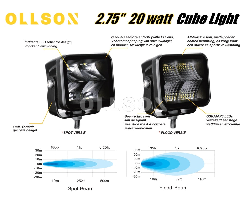 OLLSON 20 watt, 1920 Lumen, Edge-less cubelight, FLOOD